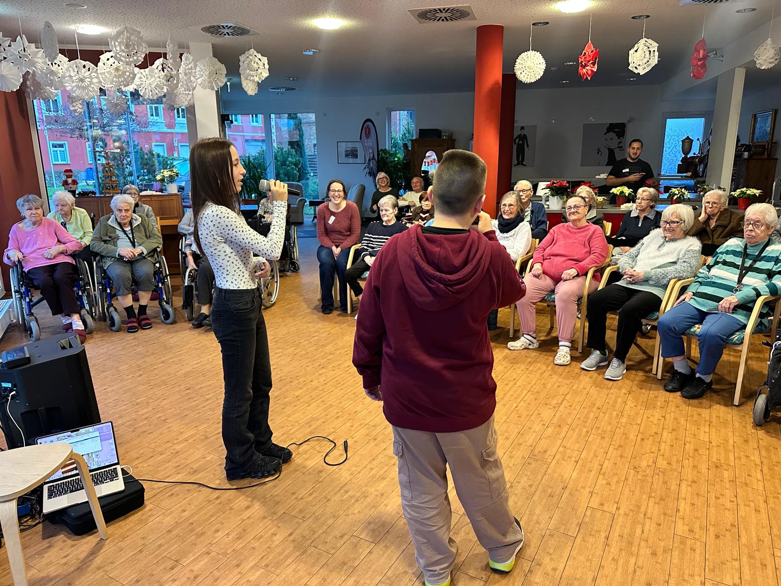 Am 16.12. besuchten Mitglieder unseres Schulchors mit ihrer Chorleitung Frau Nink das Seniorenzentrum St. Josef in Koblenz. Im Rahmen des dort stattfindenden „lebendigen Adventskalenders“ öffneten
