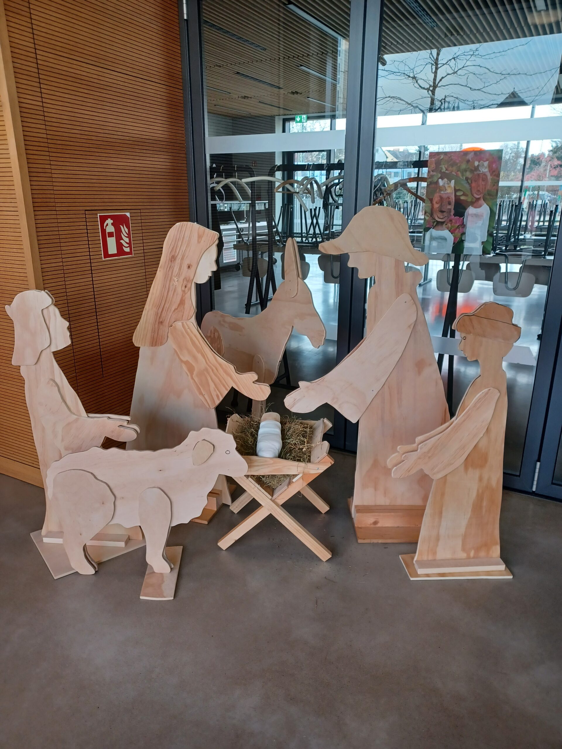 Im Rahmen des St. Franziskustages haben Schülerinnen und Schüler unter Anleitung durch Herrn Hahn die Weihnachtskrippe in der Schule um einige Figuren erweitert.Finanziell unterstützt wurde