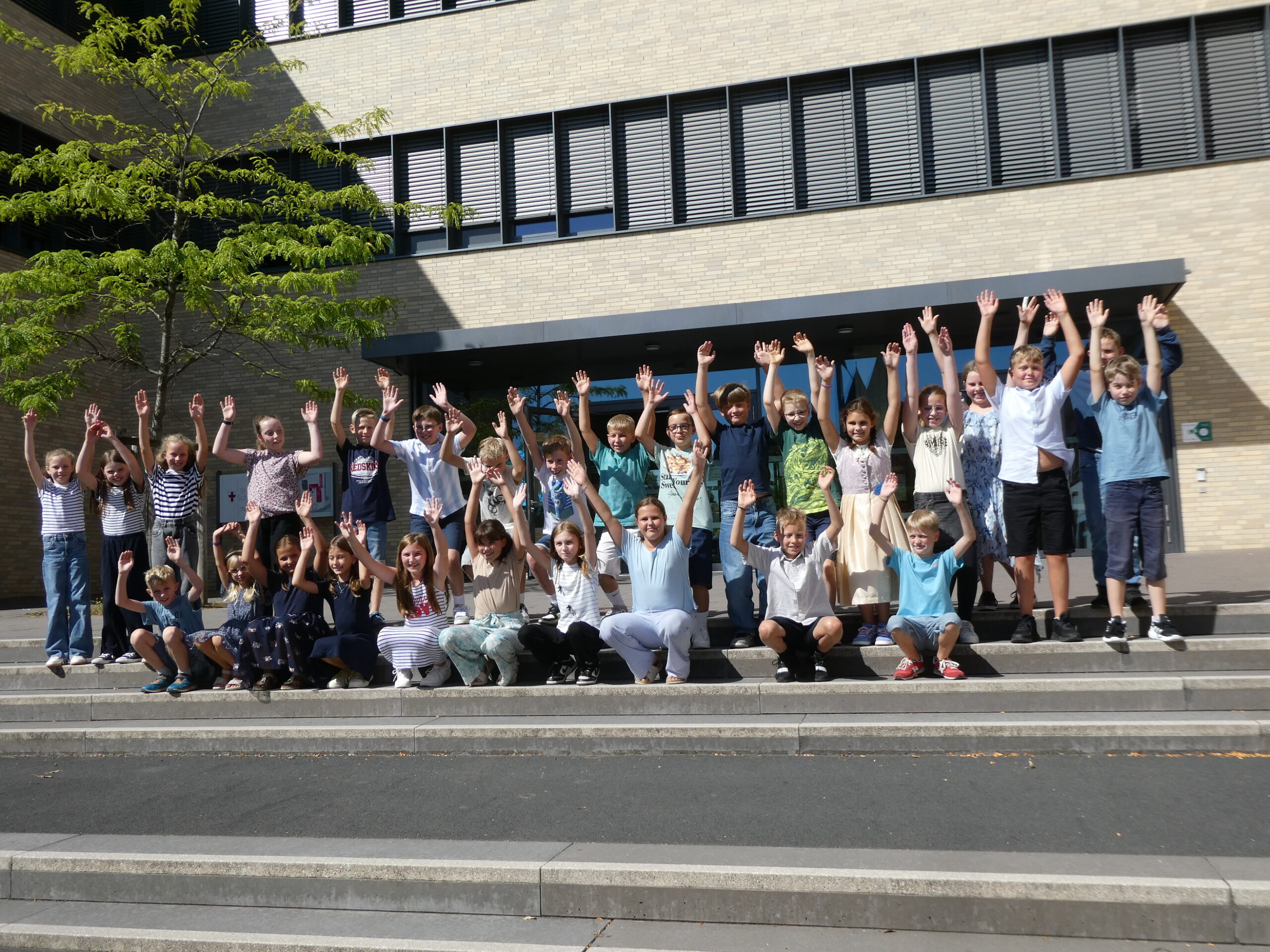 Begrüßung der neuen Fünftklässler Am 19.8. wurden 86 neue Fünftklässler der Ganztags- und Halbtagsklasse von ihren neuen Klassenleiterinnen begrüßt. Nach einer kurzen Feier in