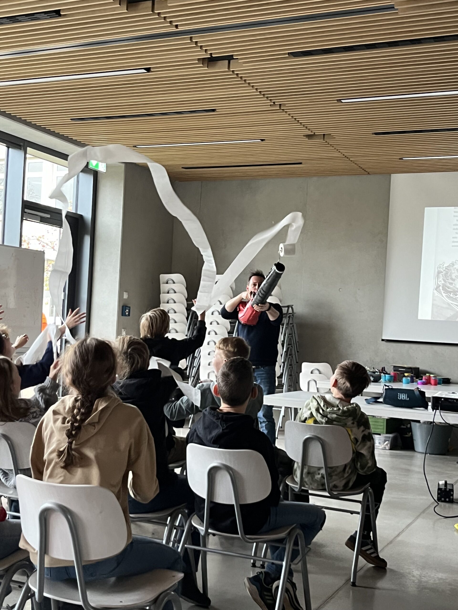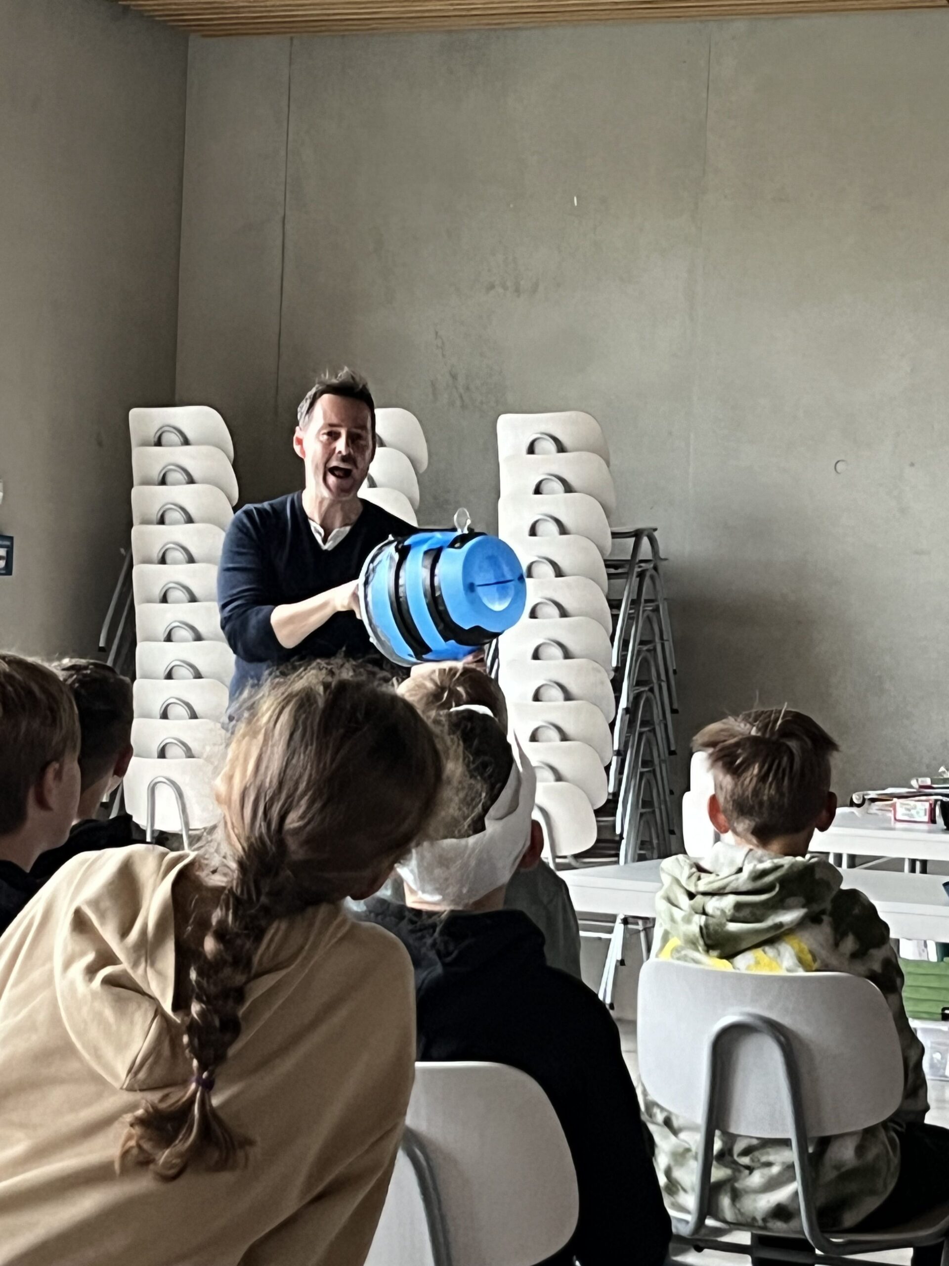Weitere Begeisterung entstand, als Berenz die speziellen und fiktiven Waffen gegen die Bösewichte (Trolljaner genannt) der Roman-Hauptfigur live präsentierte. Darunter ein Ping-Pongball spuckender Laubbläser und eine Klopapierwaffe, die er auf amüsante sowie spektakuläre Art und Weise vor dem Publikum demonstrierte!