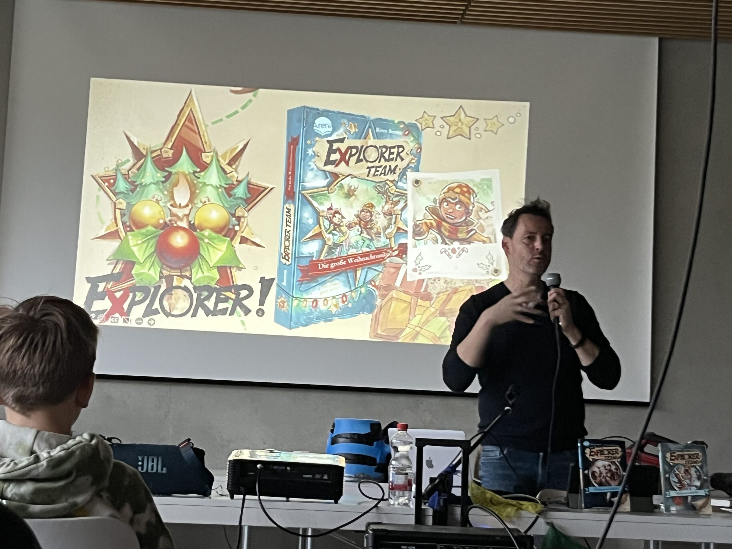 Danach gab der Autor einen Kurzüberblick zur Handlung seines Weihnachtsbuches: Die Geschichte spielt in Finnland und im Ort Rovaniemi, in dem der Weihnachtsmann lebt, ist genau dieser verschwunden. Der Hauptcharakter, Sammy, erhält den Auftrag ihn zu finden. Dabei begegnen ihm und damit auch dem Leser immer wieder Hürden in Form von Rätseln und Bösewichten. Der Autor selbst beschreibt sein Buch deshalb als eine Art Escaperoom-Roman.