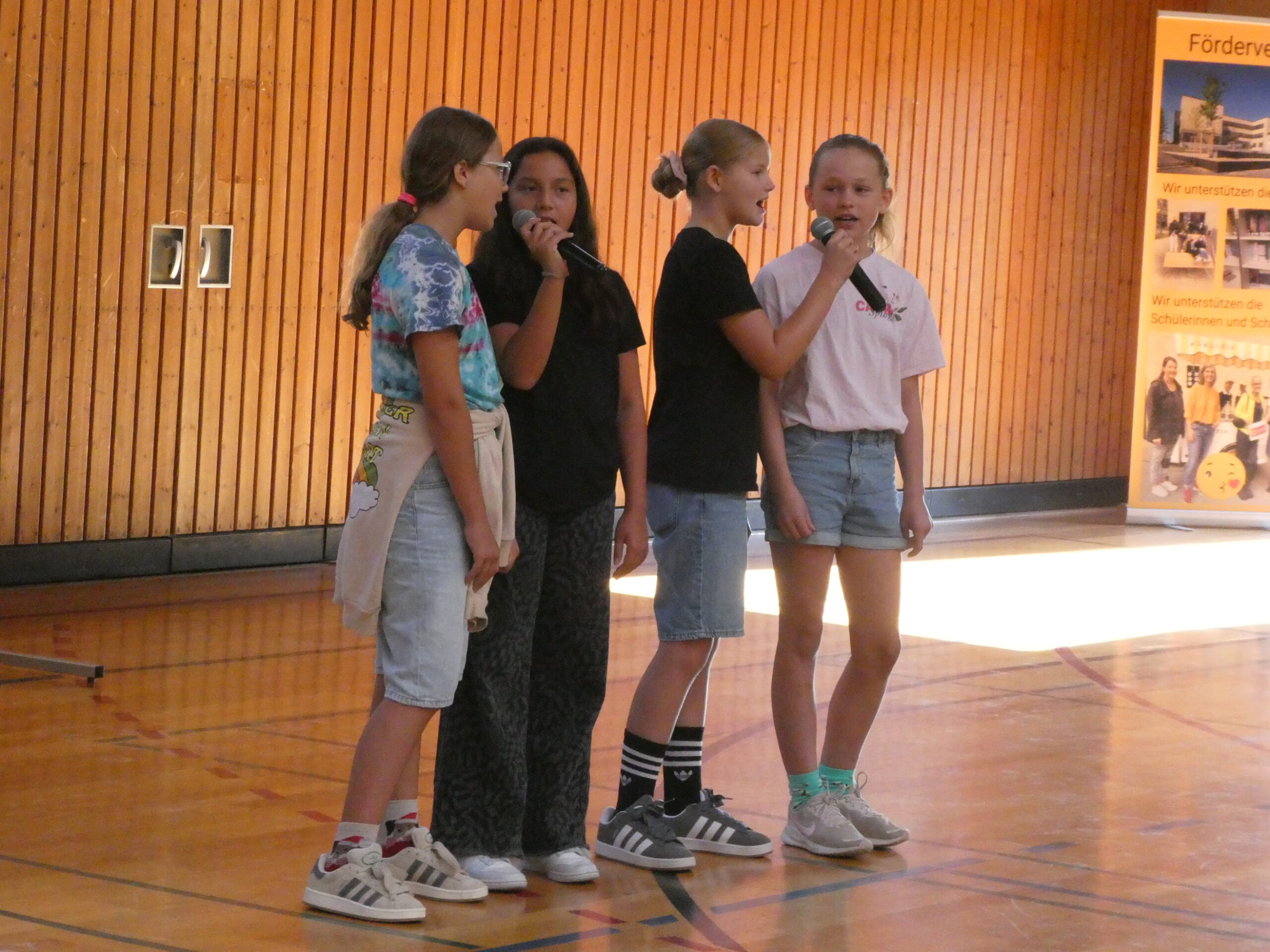 Am 19.8. wurden 86 neue Fünftklässler der Ganztags- und Halbtagsklasse von ihren neuen Klassenleiterinnen begrüßt. Nach einer kurzen Feier in der Turnhalle mit Liedbeiträgen, Vorführungen der Cheerleader, Grußworten der SV und der Schulleitung ging es für die Schüler in die Klassen, um sich kennenzulernen und die Räume zu beziehen, während die Eltern in der Turnhalle von der Schulleitung weitere Informationen bekamen. Wir wünschen allen einen guten Schulstart!