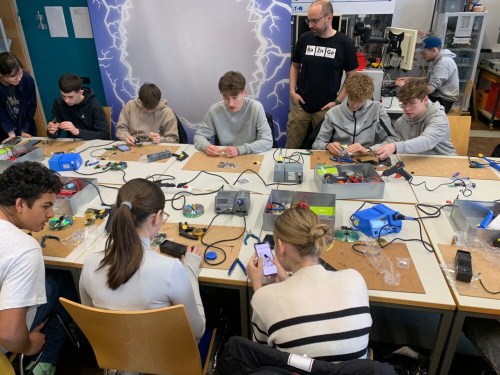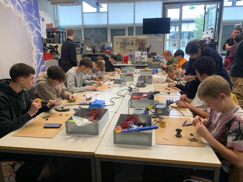 Abgesehen von praktischen Einheiten (z.B. Lötprojekte) kam auch die Theorie nicht zu kurz; auch konnten sich die Jugendlichen über die verschiedenen Studiengänge/-möglichkeiten informieren und äußerten bereits jetzt einen entsprechenden Berufswunsch.