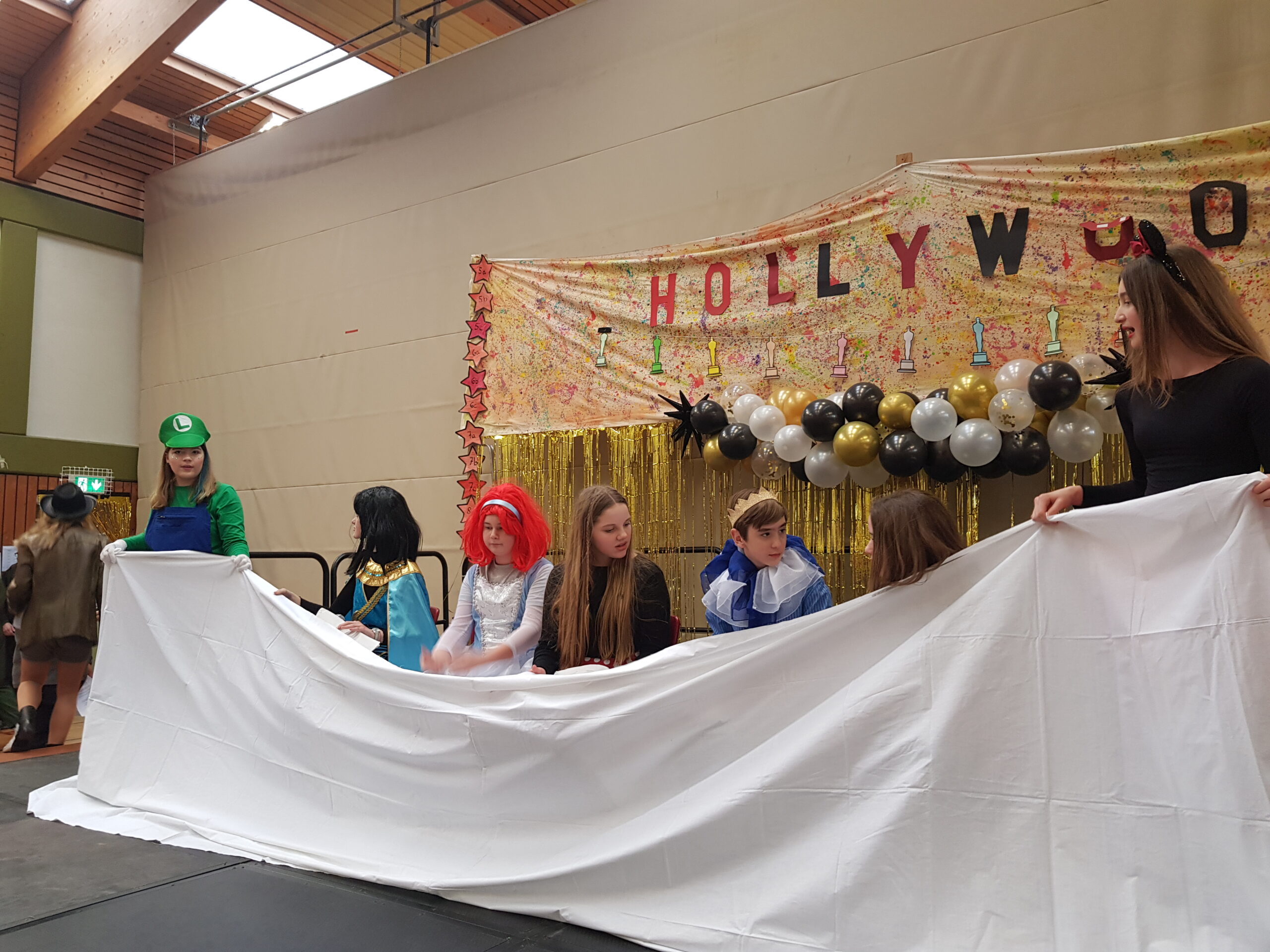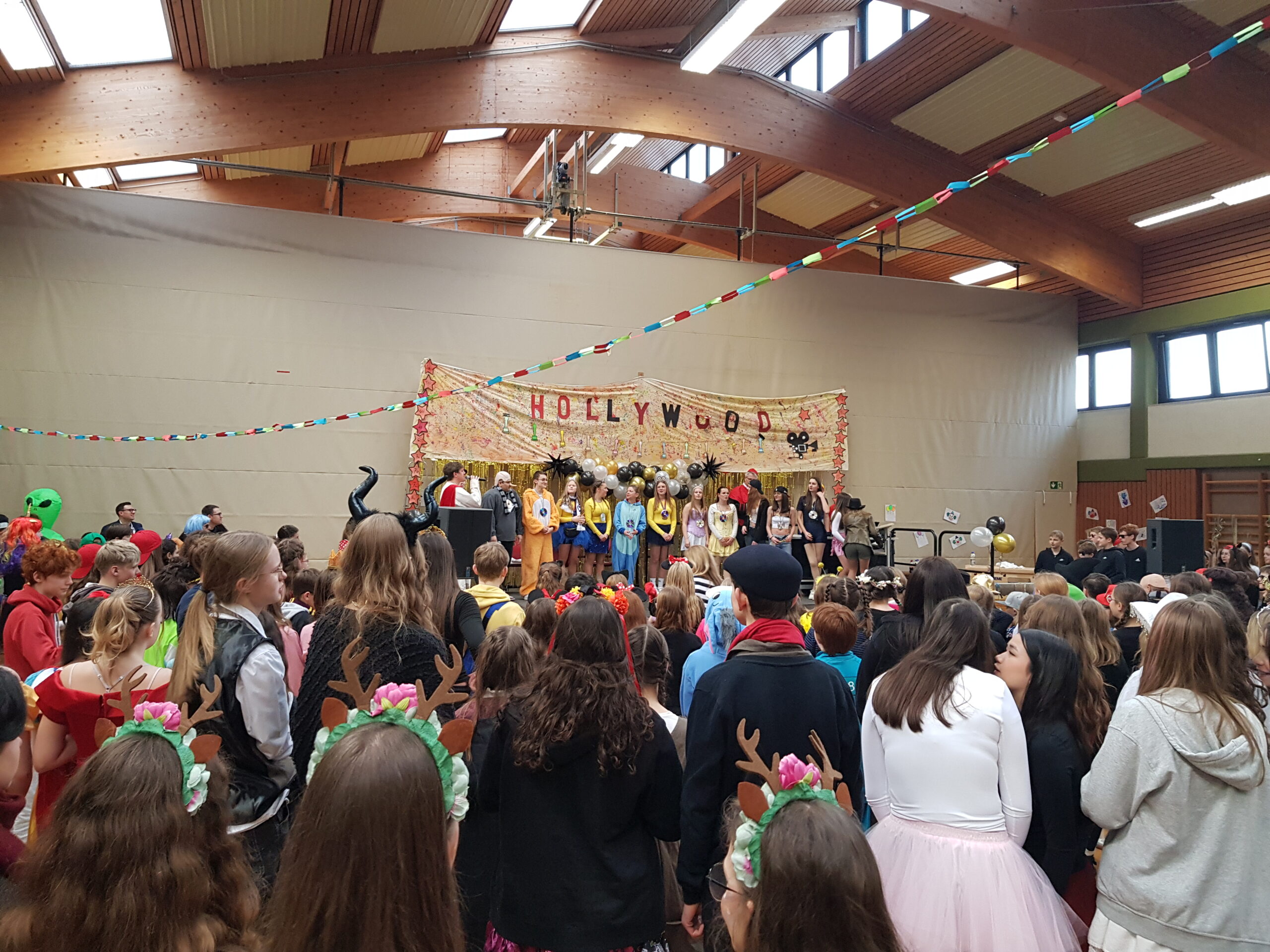 Am Mittwoch, 26.2., stimmten wir uns mit einer tollen Karnevalsparty auf die 5. Jahreszeit ein. Getreu dem Motto „Hollywood meets Karneval“ war nicht nur die Turnhalle festlich geschmückt – auch die Schulgemeinschaft hatte sich entsprechend in Schale geworfen und sorgte für zusätzlichen Glanz.